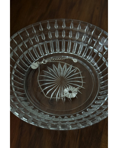 Srebrna bransoletka z wachlarzem i zawieszką z logo marki. Całość wykonana ze srebra 925.