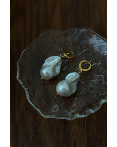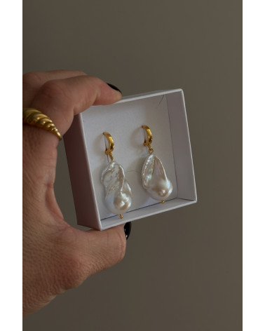Złote kolczyki z barokowymi perłami