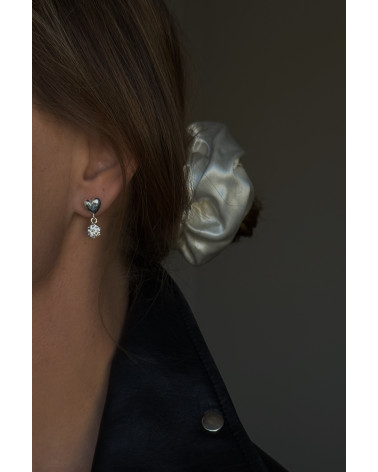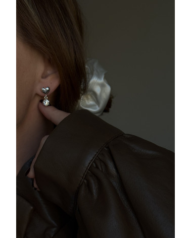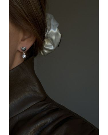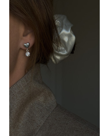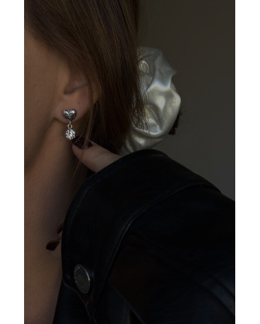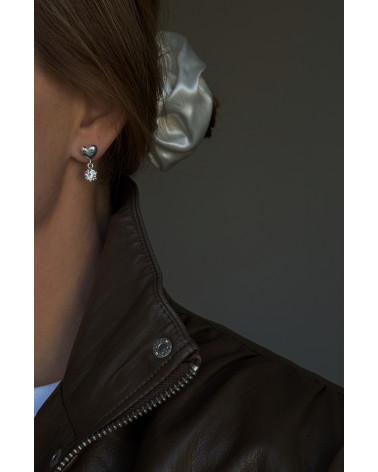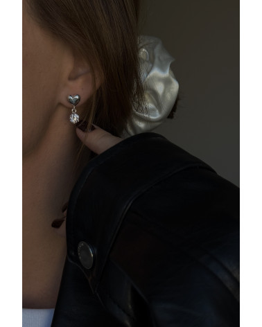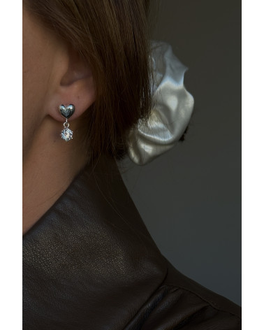Srebrne kolczyki serca z bezbarwnymi cyrkoniami