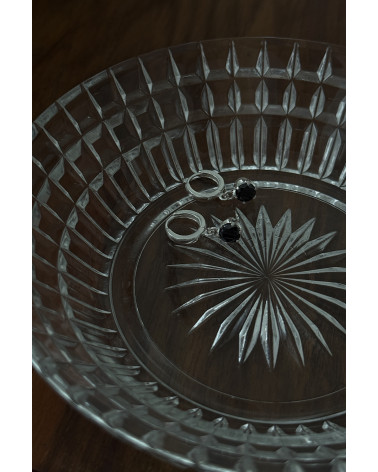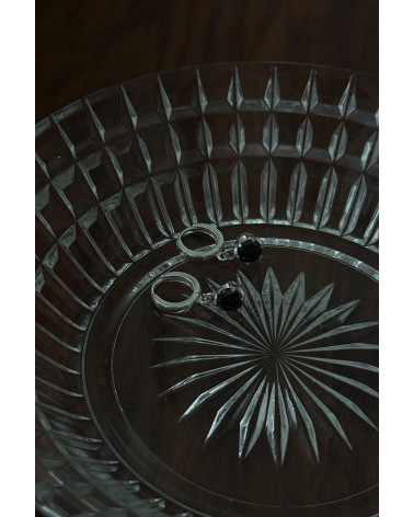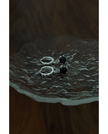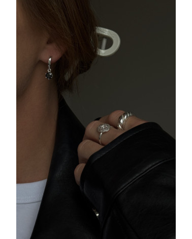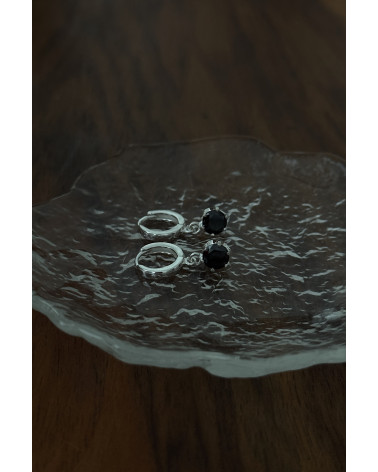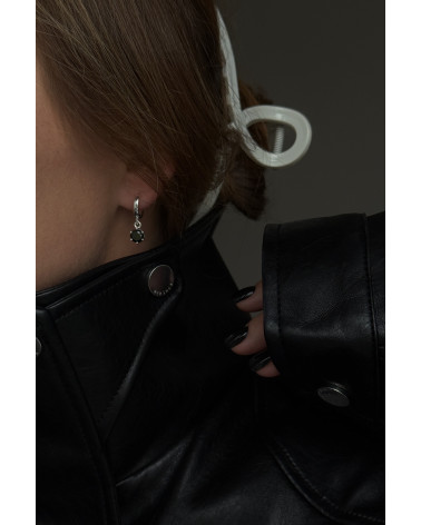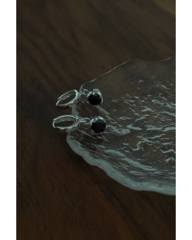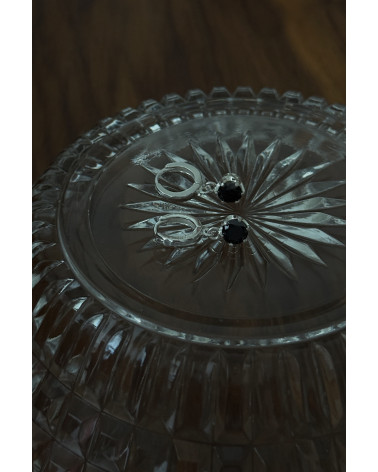 Srebrne kolczyki z czarnymi cyrkoniami. Całość wykonana ze srebra 925.