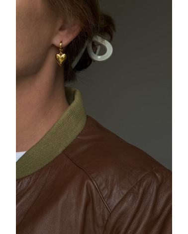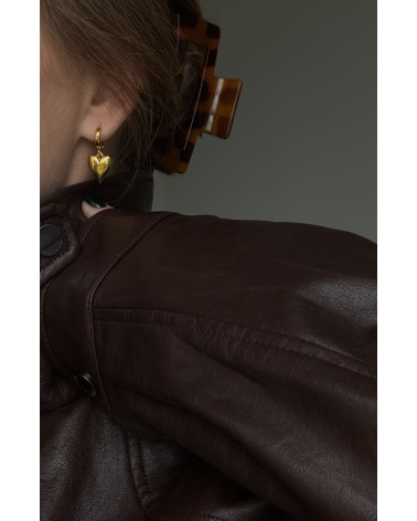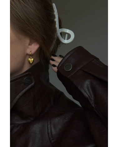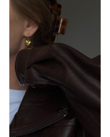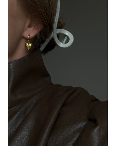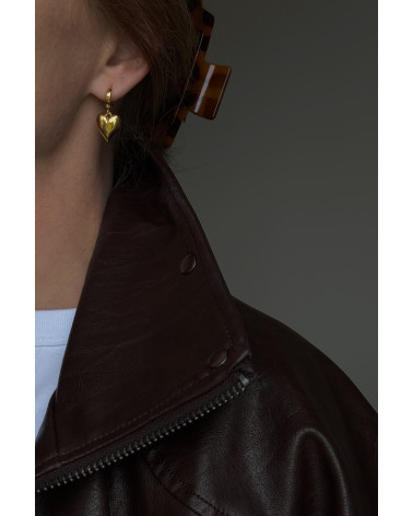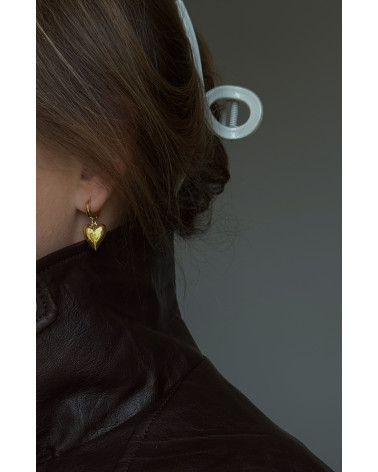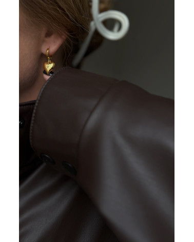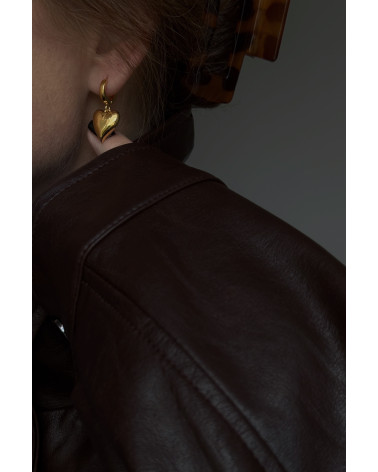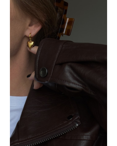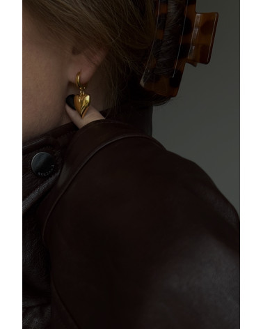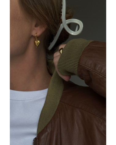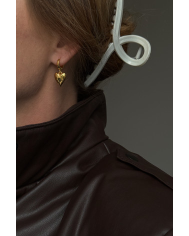 Złote kolczyki z sercami. Całość wykonana ze srebra 925 powlekanego 24 karatowym żółtym złotem. Zapinane na sztyft. Kolczyki posiadają zapięcia (baranki).