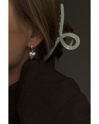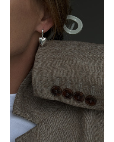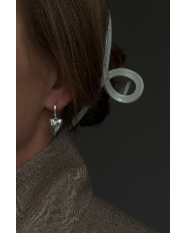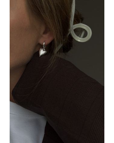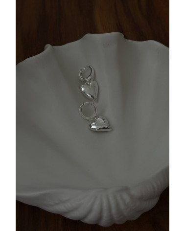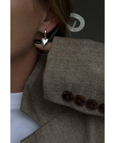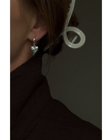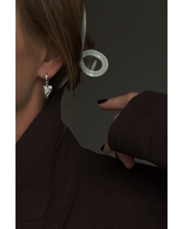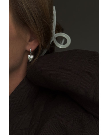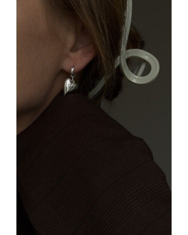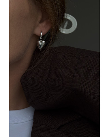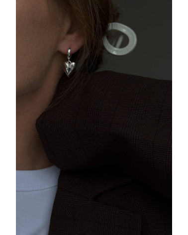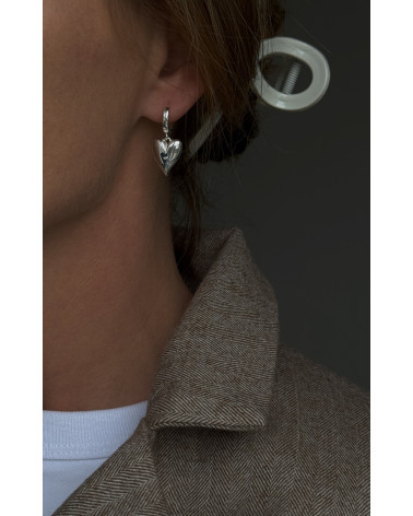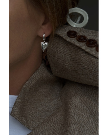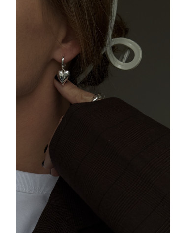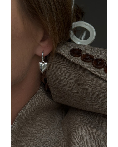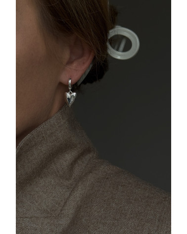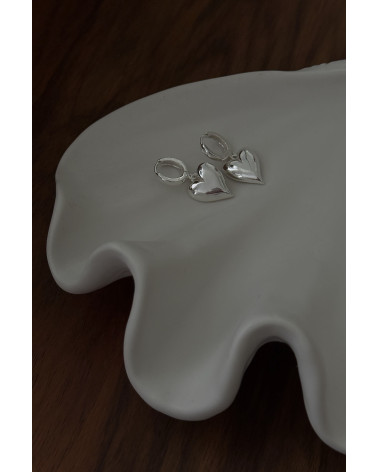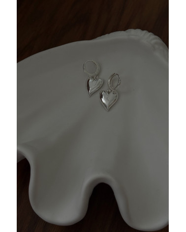 Srebrne kolczyki z sercami. Całość wykonana ze srebra 925. Zapinane na sztyft. Kolczyki posiadają zapięcia (baranki).