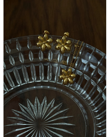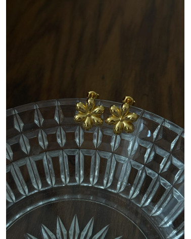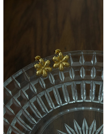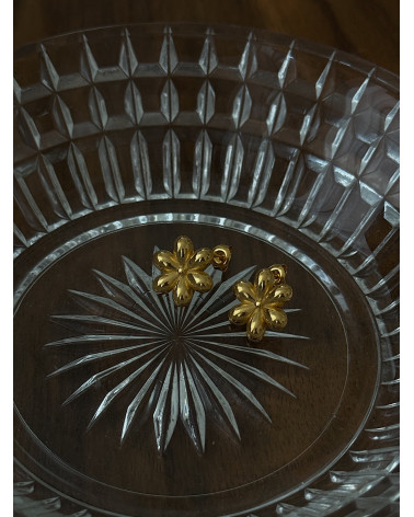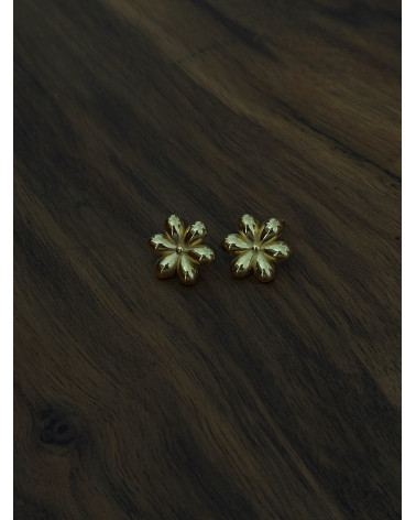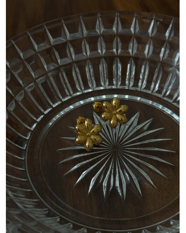 Złote kolczyki kwiatki. Całość wykonana ze srebra 925 powlekanego 24 karatowym żółtym złotem. Zapinane na sztyft. Kolczyki posiadają zapięcia (baranki).