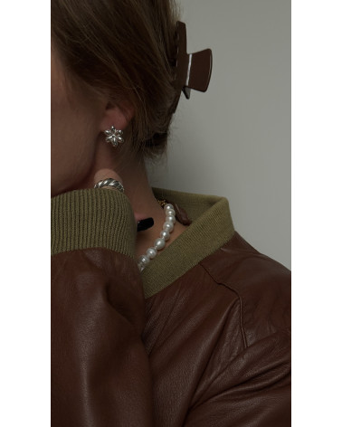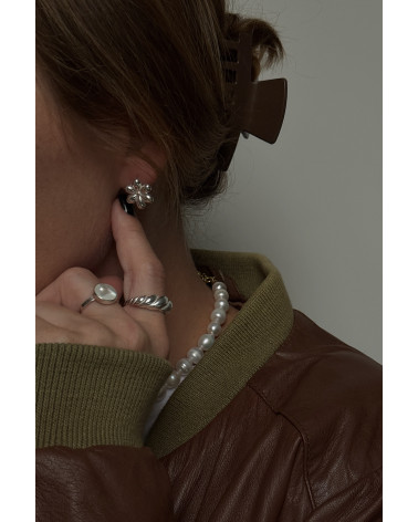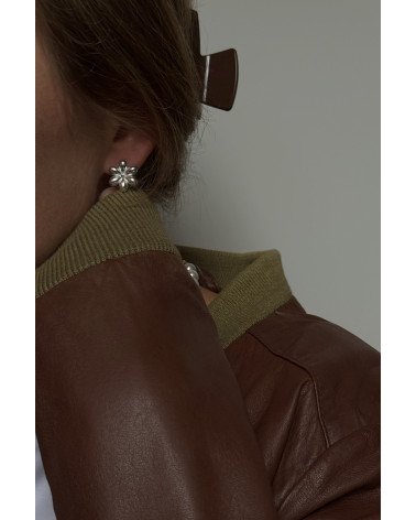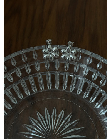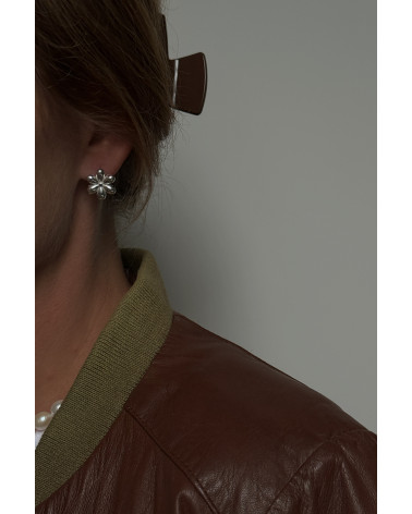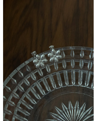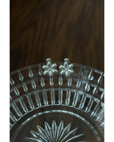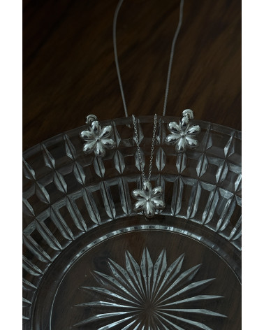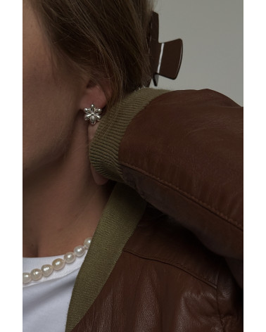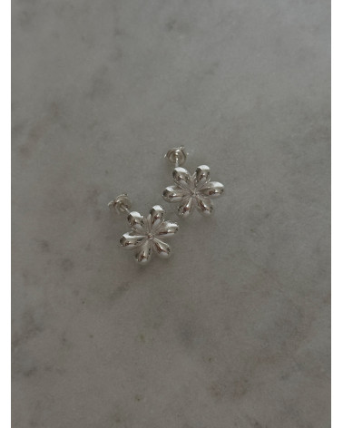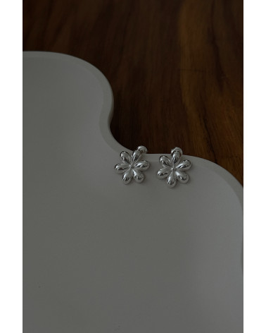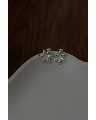 Srebrne kolczyki kwiaty. Całość wykonana ze srebra 925. Zapinane na sztyft. Kolczyki posiadają zapięcia (baranki).