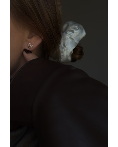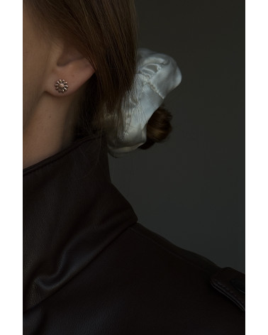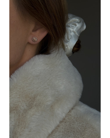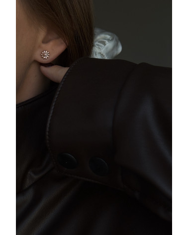 Złote kolczyki kwiatuszki. Całość wykonana ze srebra 925 powlekanego 18 karatowym różowym złotem. Zapinane na sztyft. Kolczyki posiadają zapięcia (baranki).