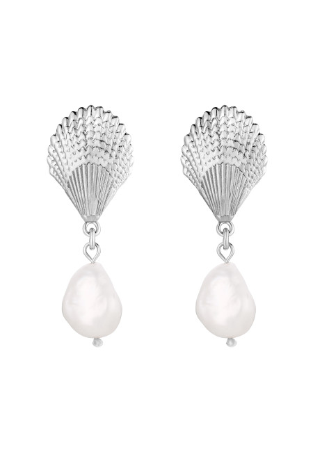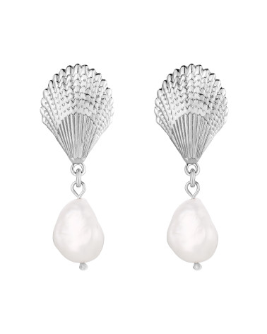 Srebrne kolczyki wykonane z muszli i naturalnych pereł słodkowodnych. Całość wykonana ze srebra 925. Zapinane na sztyfty.