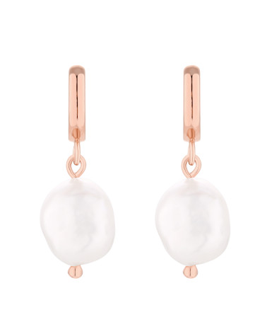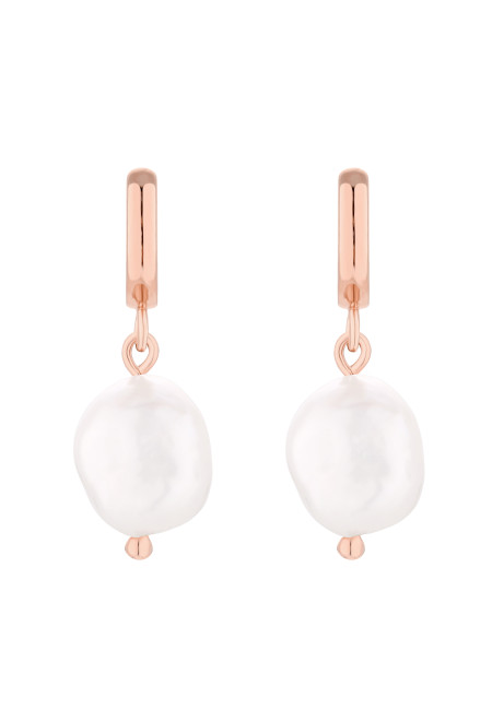Złote kolczyki z perłami naturalnymi. Całość wykonana ze srebra 925 powlekanego 18 karatowym różowym złotem.