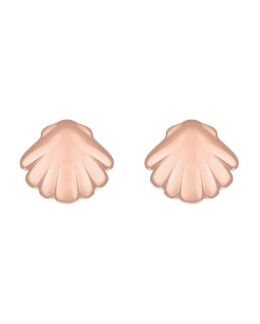Złote kolczyki muszelki. Całość wykonana ze srebra 925 powlekanego 18 karatowym różowym złotem. Zapinane na sztyft. Kolczyki posiadają zapięcia (baranki).