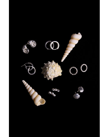 Srebrne kolczyki muszelki. Całość wykonana ze srebra 925. Zapinane na sztyft. Kolczyki posiadają zapięcia (baranki).