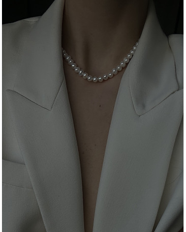 Srebrny naszyjnik wykonany z naturalnych pereł słodkowodnych i zawieszką z logo marki. Wszystkie elementy wykonane ze srebra 925.