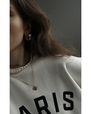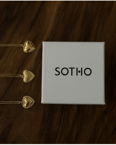 Złoty naszyjnik z sercem ze sznurkową obwódką oraz zawieszką z logo marki. Całość wykonana ze srebra 925 powlekanego 24 karatowym żółtym złotem.