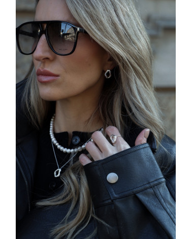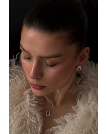 Srebrny naszyjnik z nieregularną balonową zawieszką 3D i zawieszką z logo marki. Całość wykonana ze srebra 925.