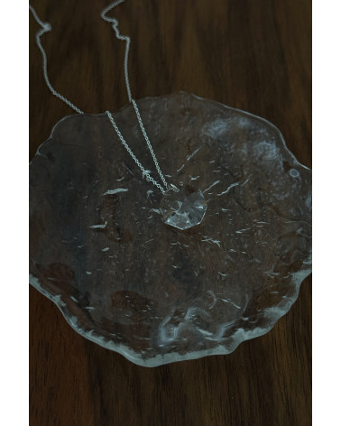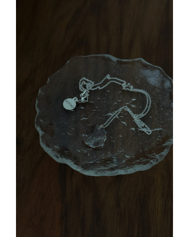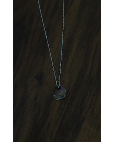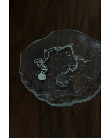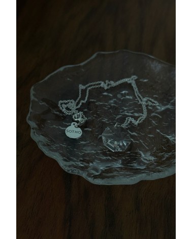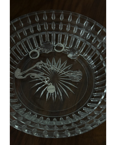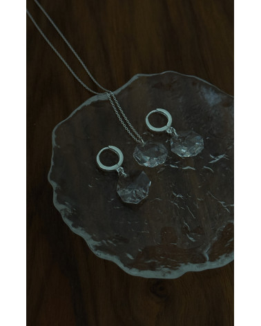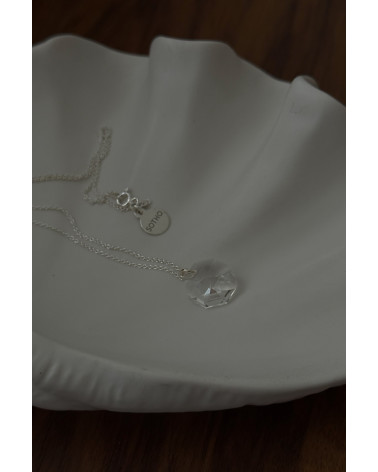 Srebrny naszyjnik z bezbarwnym kryształem Oktagon SWAROVSKI® CRYSTAL i zawieszką z logo marki. Wszystkie elementy wykonane ze srebra 925.