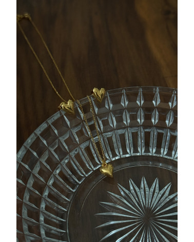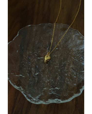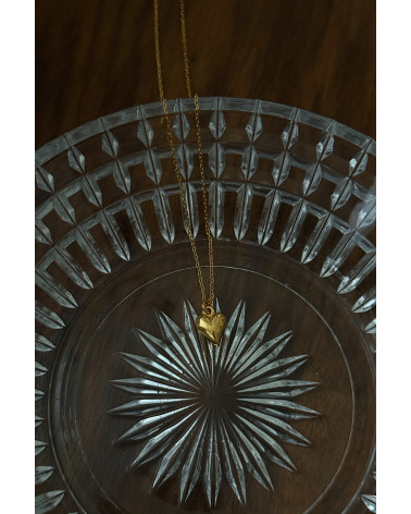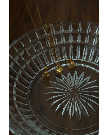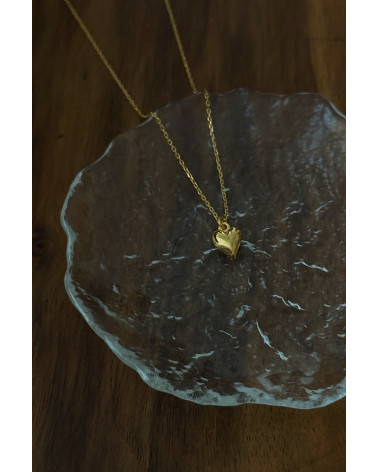 Złoty naszyjnik z małym serduszkiem oraz zawieszką z logo marki. Całość wykonana ze srebra 925 powlekanego 24 karatowym żółtym złotem.