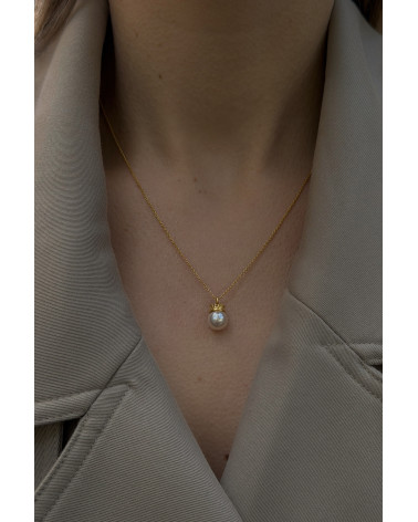 Złoty naszyjnik z perłą w koronie. Całość wykonana ze srebra 925 powlekanego 24 karatowym żółtym złotem.