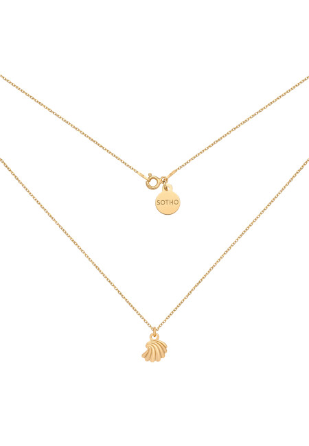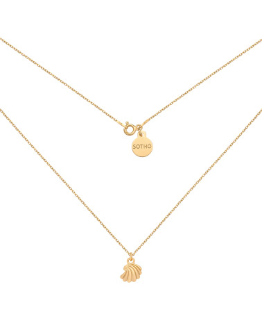 Złoty naszyjnik z muszelką. Całość wykonana ze srebra 925 powlekanego 24 karatowym żółtym złotem.