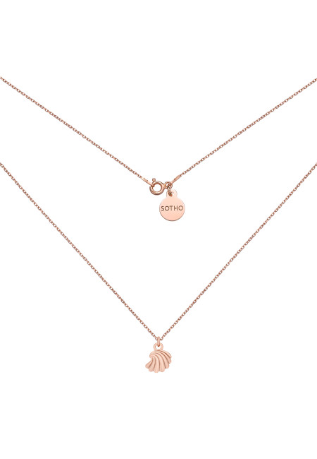 Złoty naszyjnik z muszelką. Całość wykonana ze srebra 925 powlekanego 18 karatowym różowym złotem.
