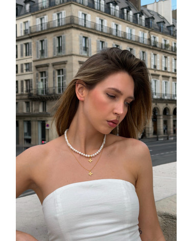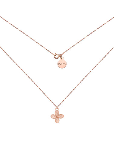 Złoty naszyjnik z kwiatkiem. Całość wykonana ze srebra 925 powlekanego 18 karatowym różowym złotem.