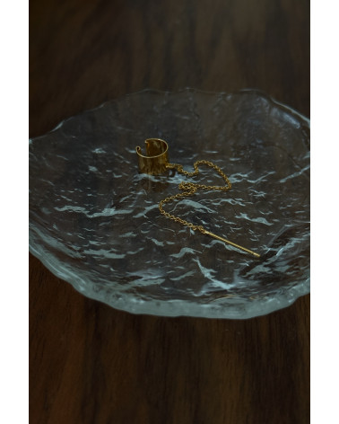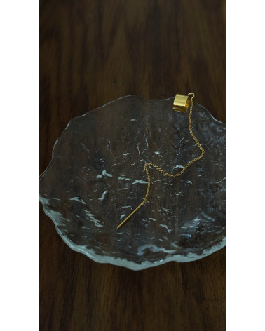 Złota nausznica z przewlekanym łańcuszkiem w całości wykonana ze srebra 925 powlekanego 24 karatowym żółtym złotem.
