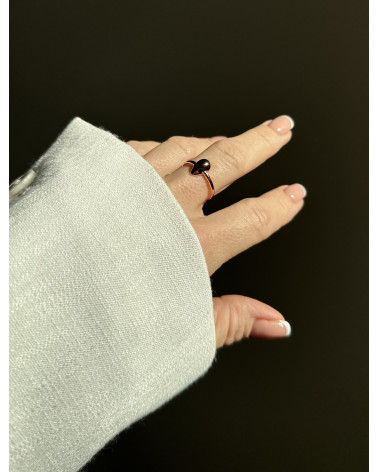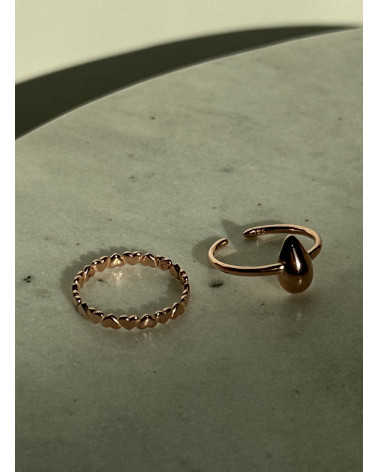 Złoty pierścionek z kroplą w całości wykonany ze srebra 925 powlekanego 18 karatowym różowym złotem.