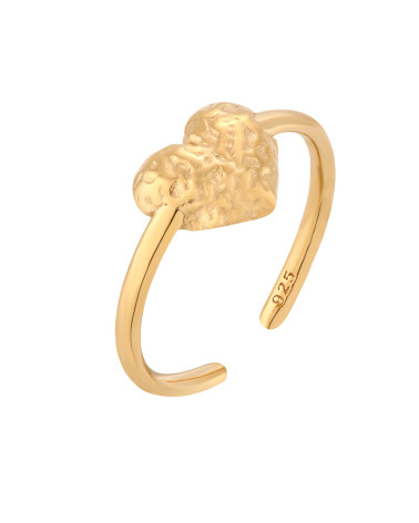 Złoty pierścionek z gniecionym sercem wykonany ze srebra 925 powlekanego 24 karatowym żółtym złotem.